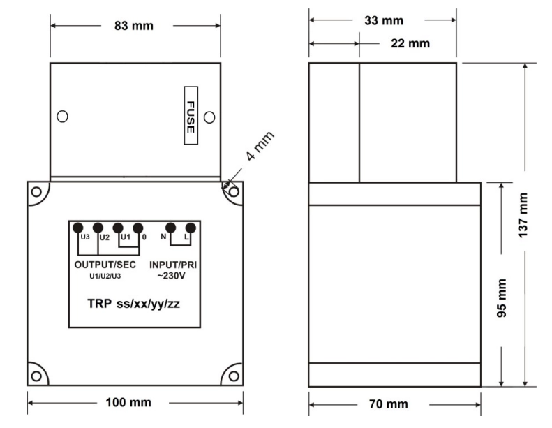 - Transformator: TRP 80VA