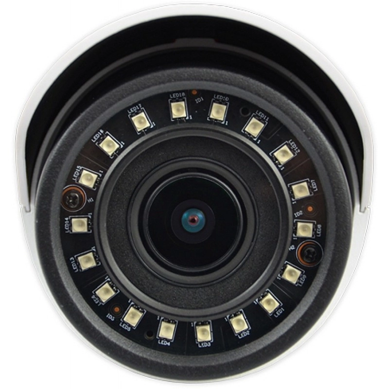 Uniwersalna kamera tubowa 5 megapixelowa z obiektywem zmienno ogniskowym i automatyczną ostrością. Mechanicznym filtrem podczerwieni i promiennik o zasięgu 30m z diodami wysokiej mocy pozwalają kamerze prezentować dobrej jakości w całkowitej ciemności. Obiektyw o ogniskowej 4-9mm z możliwością zdalnej regulacji poprzez interfejs WEB pozwala w dużym zakresie regulować kąt widzenia kamery oraz automatycznie dopasować ostrość. Funkcja DWDR poprawiająca dynamikę kamery wydobywa większą ilość szczegółów z kontrastowego planu obserwacyjnego. Wbudowane gniazdo pamięci pozwala na podłączenie do kamery karty micro SD o pojemności do 64 GB. Kamera zasilana jest napięciem 12 VDC / 24 VAC oraz poprzez PoE (802.3af).