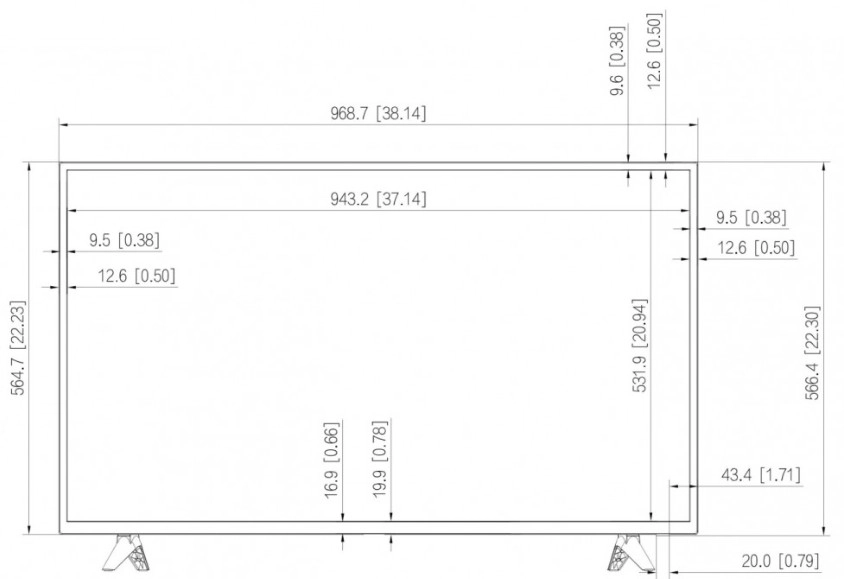 | Wymiary (bez podstawy) | 968.7×564.7×72.9 mm |