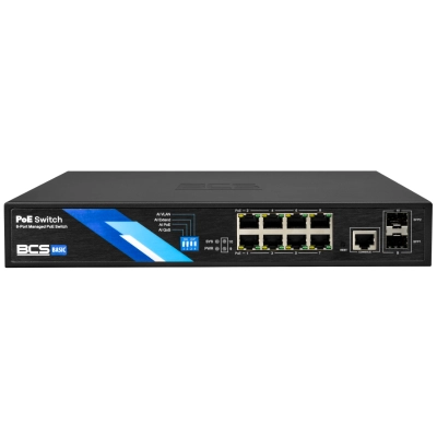 - Ilość portów: 8x RJ45 PoE 1000Mbps oraz 2x SFP Gigabit,