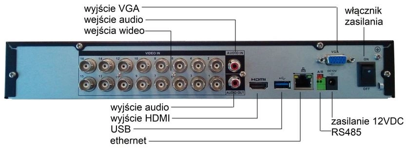 - Archiwizacja: 1 x HDD Sata max. 10TB, 2 x USB,
