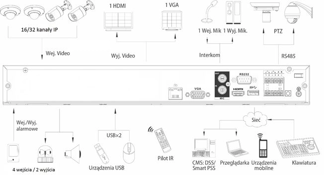 - Wbudowany web-service, CMS(DSS/PSS/Smart PSS) , iDMSS/gDMSS, BCS Viewer