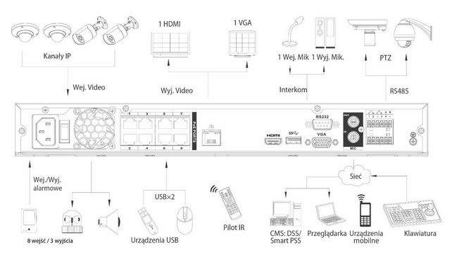 - Kodowanie : H.265/H.264/MJPEG 16 kanały,
