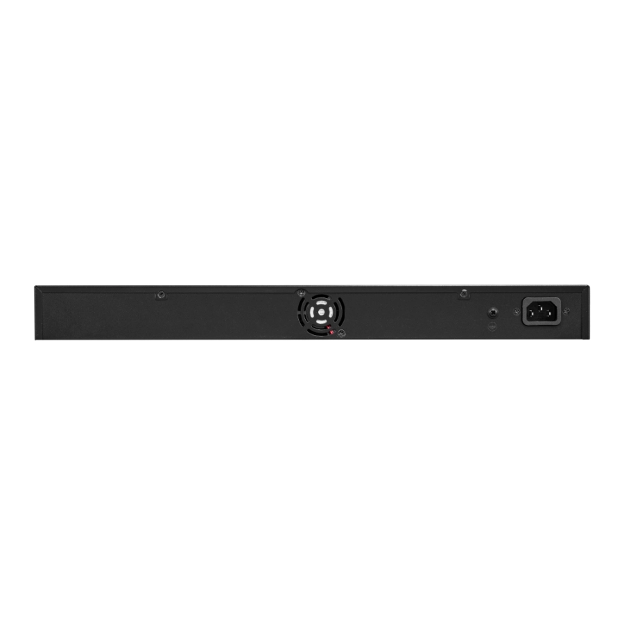 Posiada porty: 24× RJ45 PoE 100Mbps + 2×RJ45 1Gbps / 1×SFP 1Gbps. Dedykowany do pracy w systemie monitoringu IP.