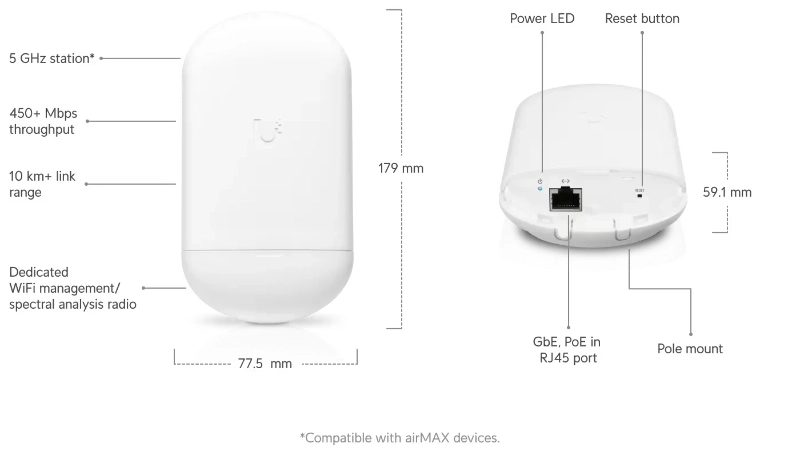 Metoda zasilania | Pasywne PoE (pary 4, 5+; 7, 8 powrót) |