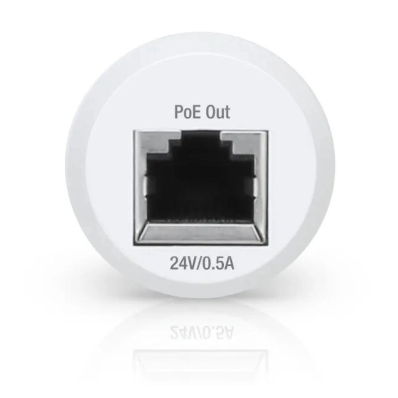 Interfejs sieciowy | PoE wejście (802.3af), (1) port Gigabit RJ45 PoE wyjście (24 V pasywne), (1) port Gigabit RJ45 |